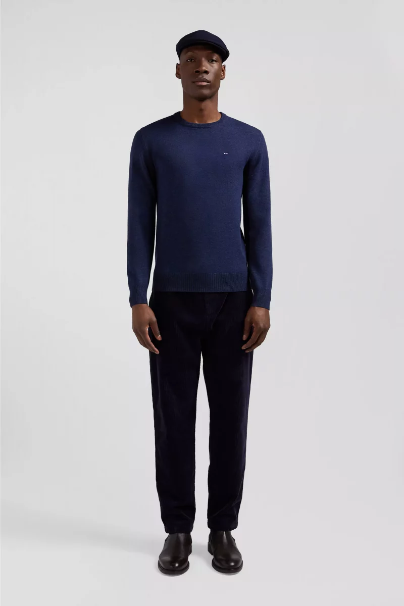 Pull Col Rond Laine & Coton Bleu Fonce