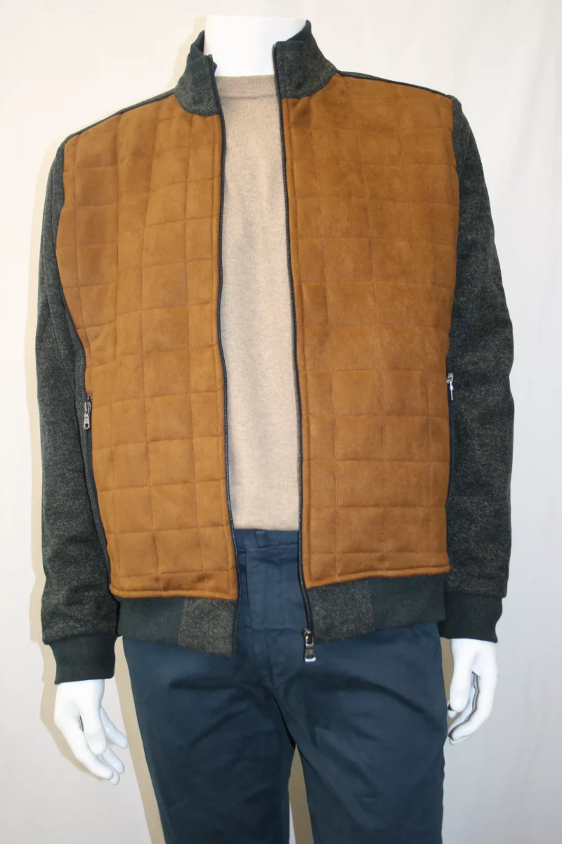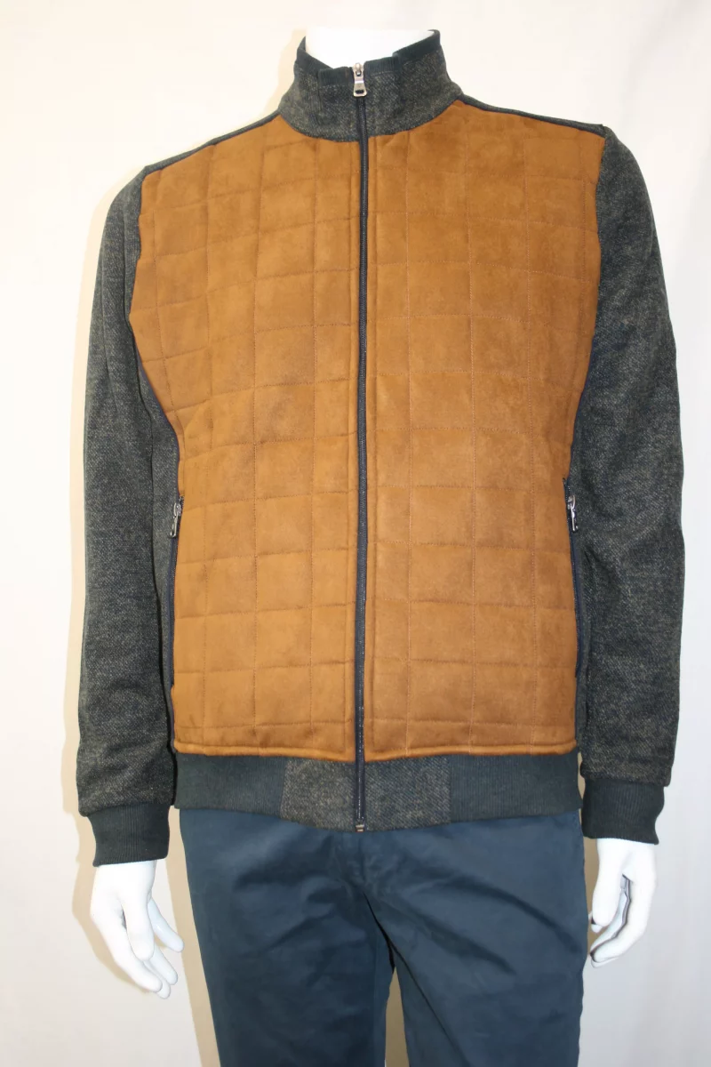 Gilet Manches Longues Bi-matiere Corps Suede Beige Moyen