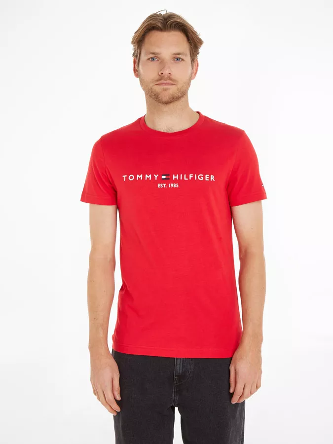 T-shirt Manches Courtes Broderie Tommy Rouge Moyen