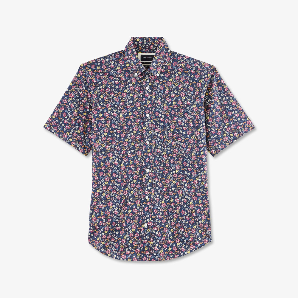 Chemise Manches Courtes Sport Imp Fleurs Bleu Fonce