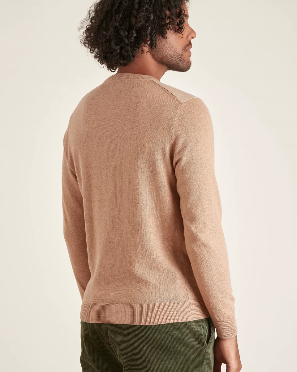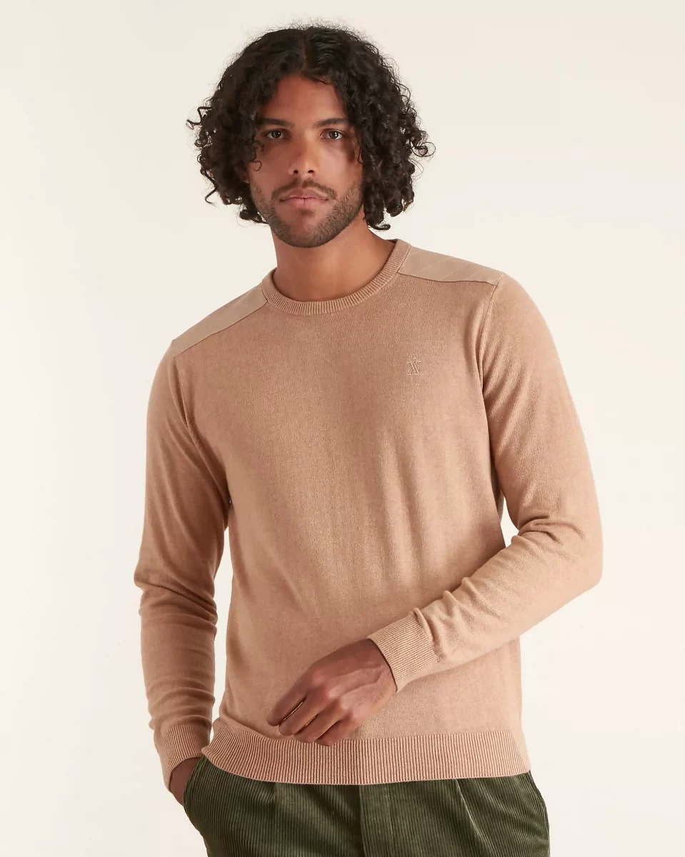 Pull Col Rond Coton Laine Epaules Suedine Beige Clair