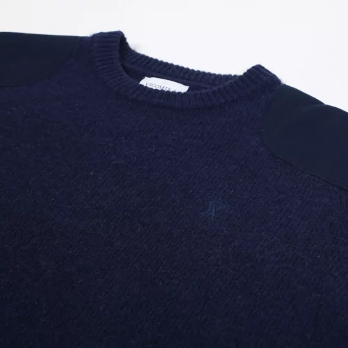Pull Col Rond Laine Epaules Ton Sur Ton Bleu Fonce