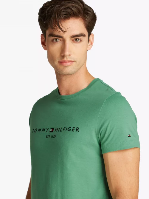 T-shirt Manches Courtes Broderie Poitrine Vert Moyen